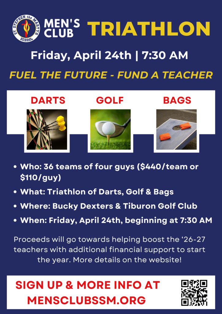 This group of men meet monthly for fellowship with other school dads/guardians and then gather as needed to provide service to our school & parish. They also make time to have a little fun! They’ve hosted Bags Tournaments, Husker Watch Parties & a Triathlon.